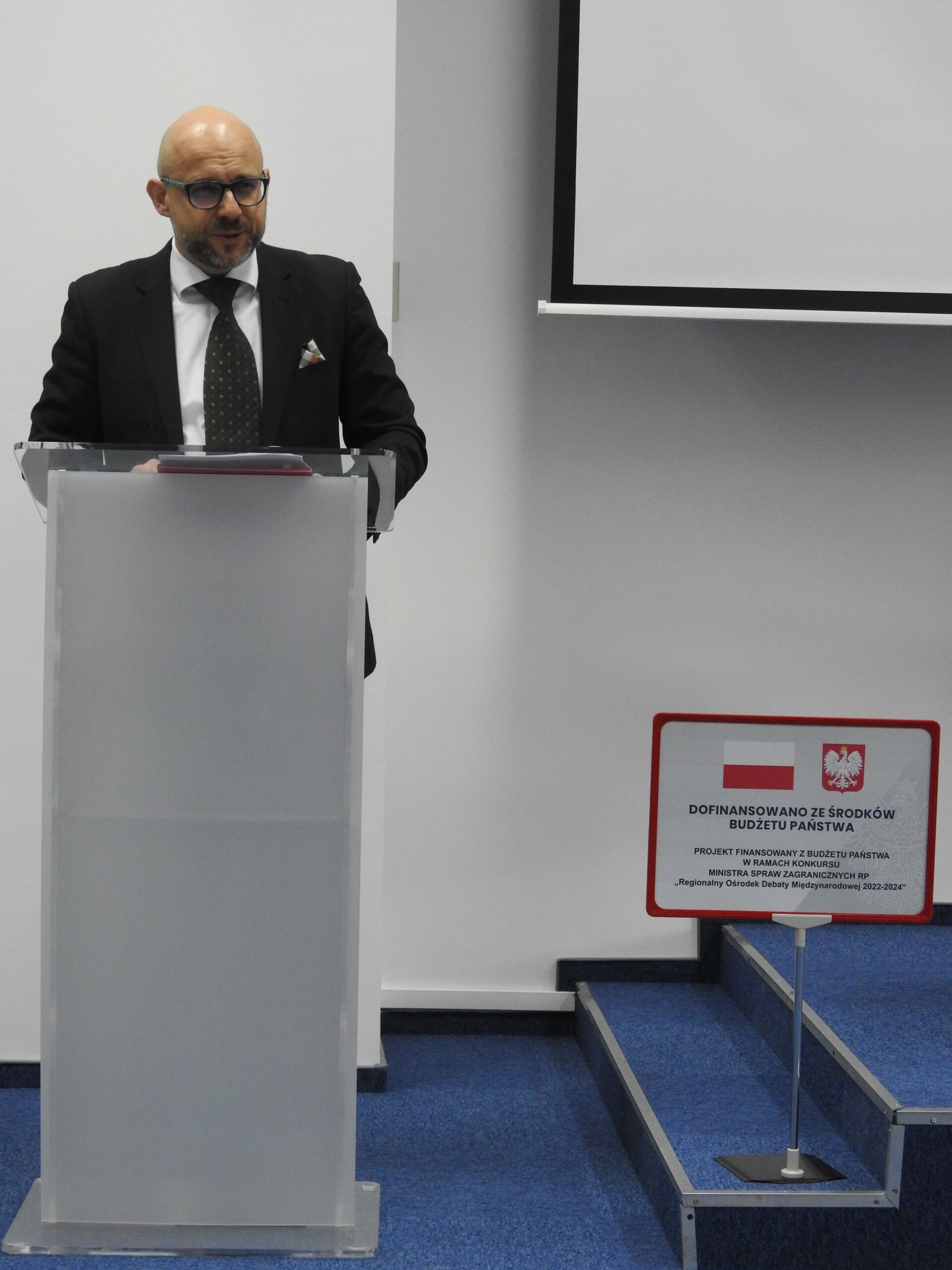 - Gościem specjalnym inauguracji był zastępca dyrektora Akademii Dyplomatycznej MSZ w Warszawie dr hab. Arkadiusz Radwan prof. Uniwersytetu Witolda Wielkiego w Kownie, który wygłosił wykład na temat zadań Akademii Dyplomatycznej w Warszawie i aplikacji dyplomatyczno-konsularnej w procesie rekrutacji i kształcenia dyplomatów.